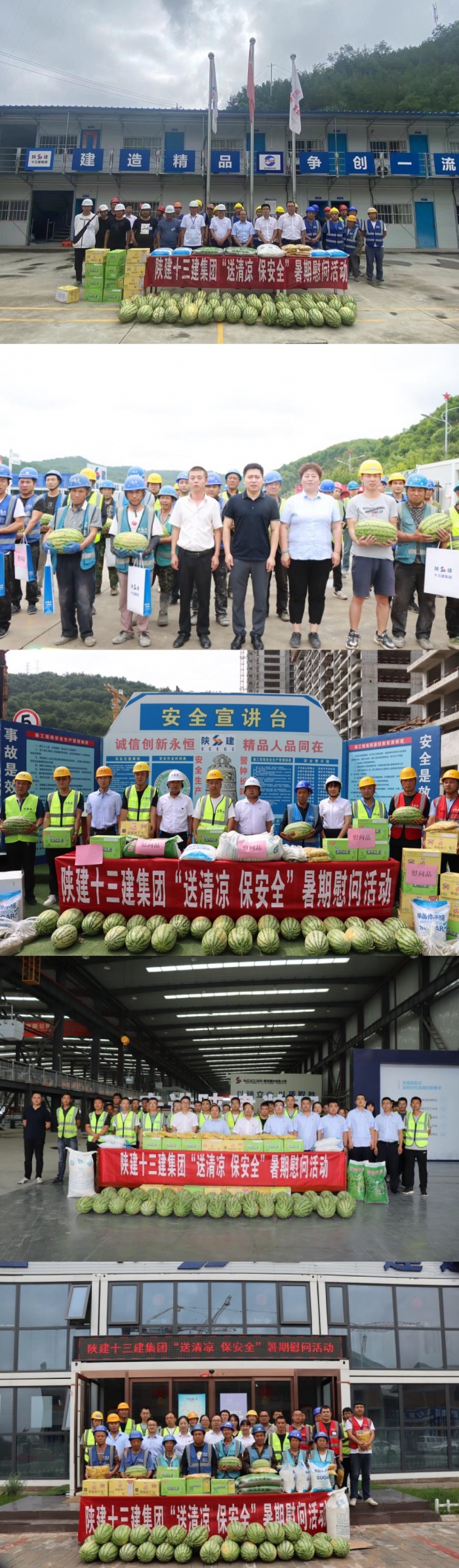 集團(tuán)總工程師王弘起,副總經(jīng)理?xiàng)钣篮辏笨偨?jīng)理張?chǎng)蝹?,總?huì)計(jì)師劉小衛(wèi),紀(jì)委書記、工會(huì)主席李靜分別前往延安市社會(huì)福利院遷建項(xiàng)目(一期)、延安南泥灣工匠學(xué)院項(xiàng)目、伴山樾谷·芳菲里項(xiàng)目、延安新型建材公司、信天游文創(chuàng)餐飲街區(qū)等項(xiàng)目開展慰問活動(dòng),代表集團(tuán)公司對(duì)高溫天氣堅(jiān)守在一線的廣大員工及工友表示親切的問候和衷心的感謝,并為大家送上西瓜、白糖、綠豆、菊花、冰糖、飲料、花露水等防暑降溫物品。同時(shí),叮囑項(xiàng)目部要始終把安全放在首位,科學(xué)安排施工作業(yè)時(shí)間,做好后勤保障工作,制定防暑防汛工作預(yù)案,在確保一線施工作業(yè)人員健康安全的前提下抓質(zhì)量提進(jìn)度,緊盯項(xiàng)目節(jié)點(diǎn)目標(biāo),圓滿完成各項(xiàng)建設(shè)任務(wù)。