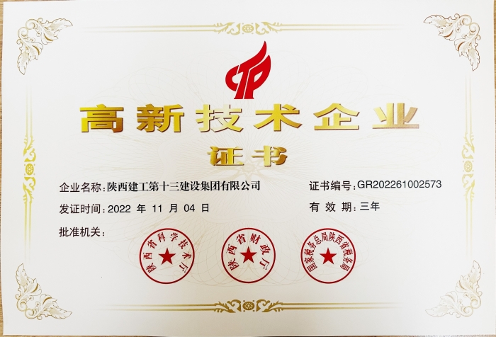 近日,全國高新技術企業(yè)認定管理工作領導小組辦公室發(fā)布了《陜西省認定機構2022年認定的第三批高新技術企業(yè)備案名單》,陜西建工第十三建設集團有限公司通過國家級高新技術企業(yè)認定。